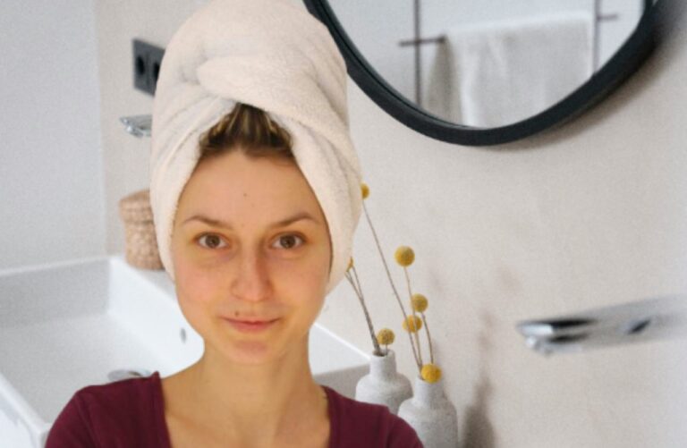 donna con asciugamano in testa