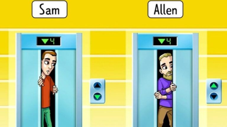 Come potete vedere, la scena riporta due individui, Sam e Allen che si stanno apprestando a salire o scendere in ascensore. Come vedete dalla pulsantiera, Sam ha deciso di scendere e infatti ha scelto l’ascensore corretta, poiché dal quarto piano, appena le porte si chiuderanno, lo porterà a destinazione in uno dei piani sottostanti. Allen invece, secondo la pulsantiera vorrebbe salire, ma avendo scelto l’ascensore sbagliato, cioè quello che scende, farà due giri inutilmente, prima giù e poi di nuovo su. L’avevate capito? A prescindere che ce l’abbiate fatta o meno, poco importa, era solo un gioco. Continuate a esercitarvi e divertirvi con noi. Ai prossimi rompicapo!